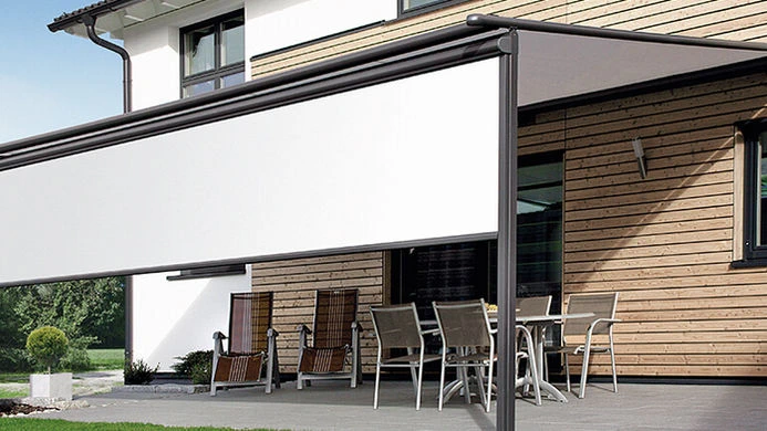 Für Fassaden (z.B. Glasfassade oder Fenster, Pergolamarkisen, Terrassendächer oder Wintergärten.) Die Senkrechtmarkisen, Vertikalmarkisen können entweder manuell oder über Sensoren bedient werden.